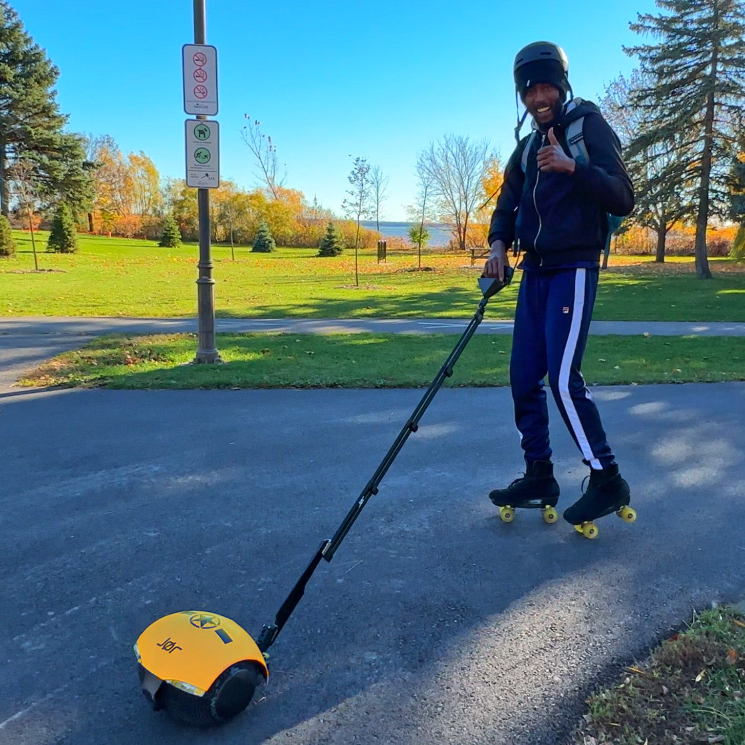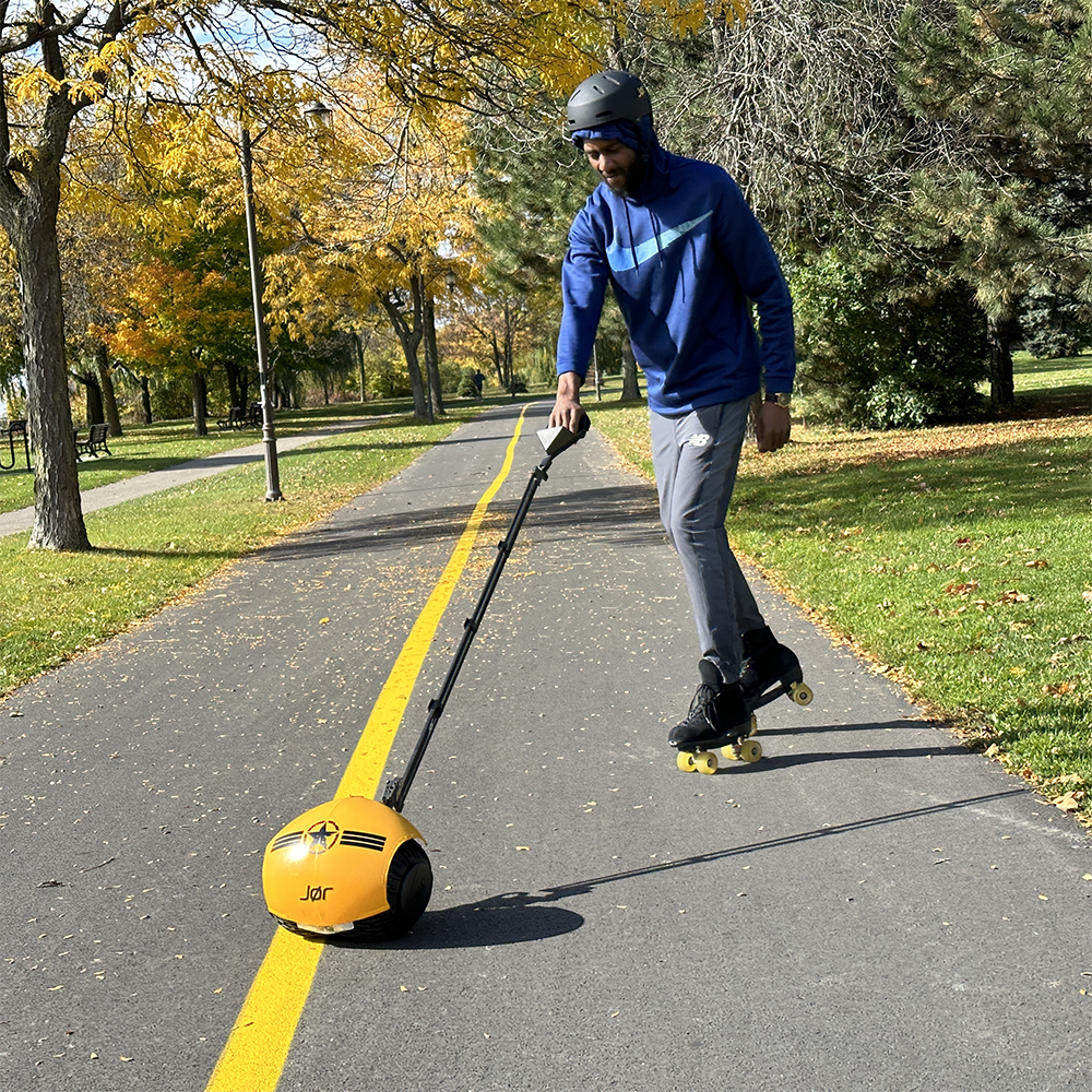 Joring is an exciting sport that allows the rider on roller skates being tugged and pulled in a controlled manner, going fast or slow, and experience new body movements in respond to the vehicle behavior, and is pure fun.