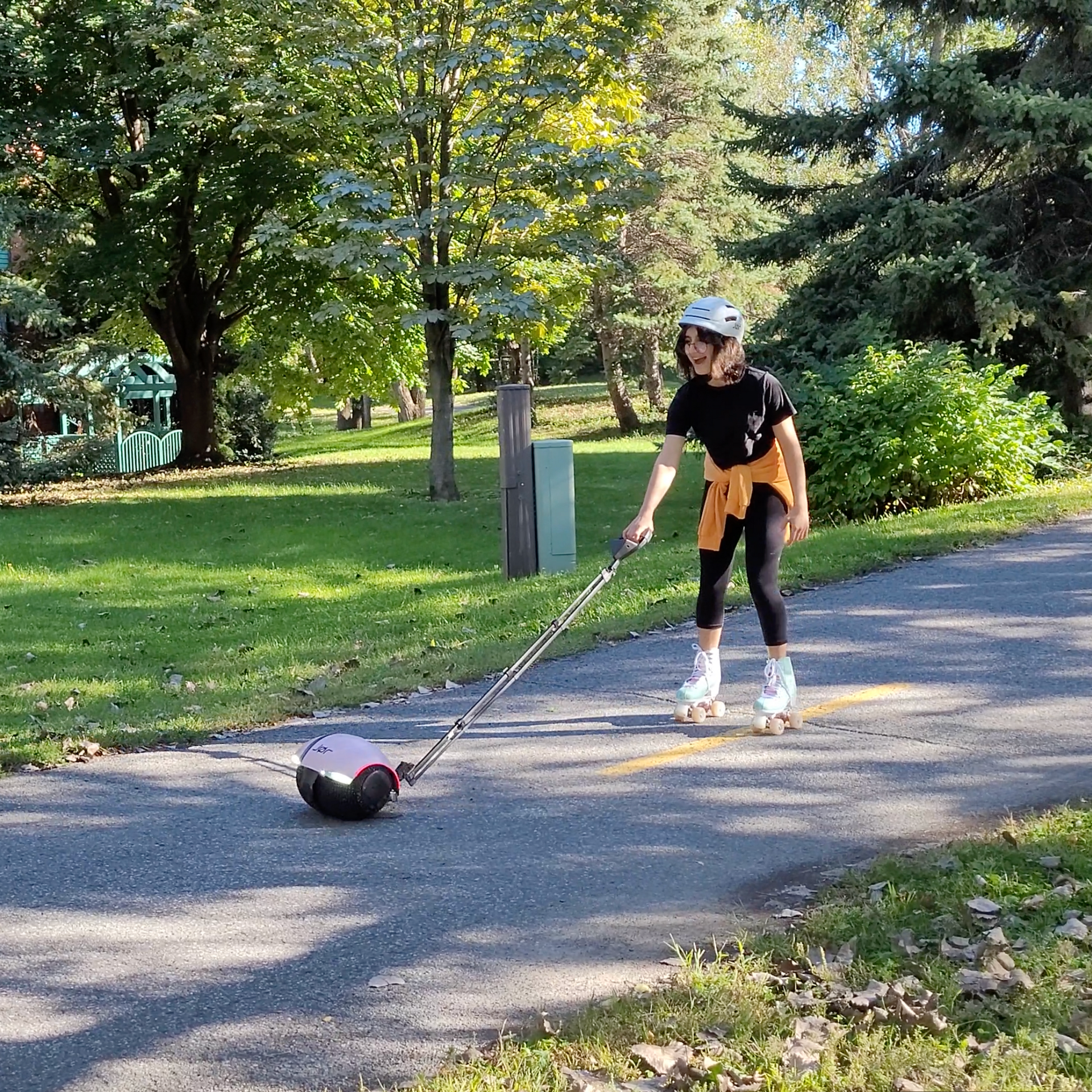 Our design, although has one wheel, produces a ride with a total of 3 points of contact with the road when combined with the 2 legs of the rider wearing the skates, forming a tripod-like structure resulting in a stable state of balance and prevents falling accidents, because the rider can continuously leverage on the handle to keep balance.